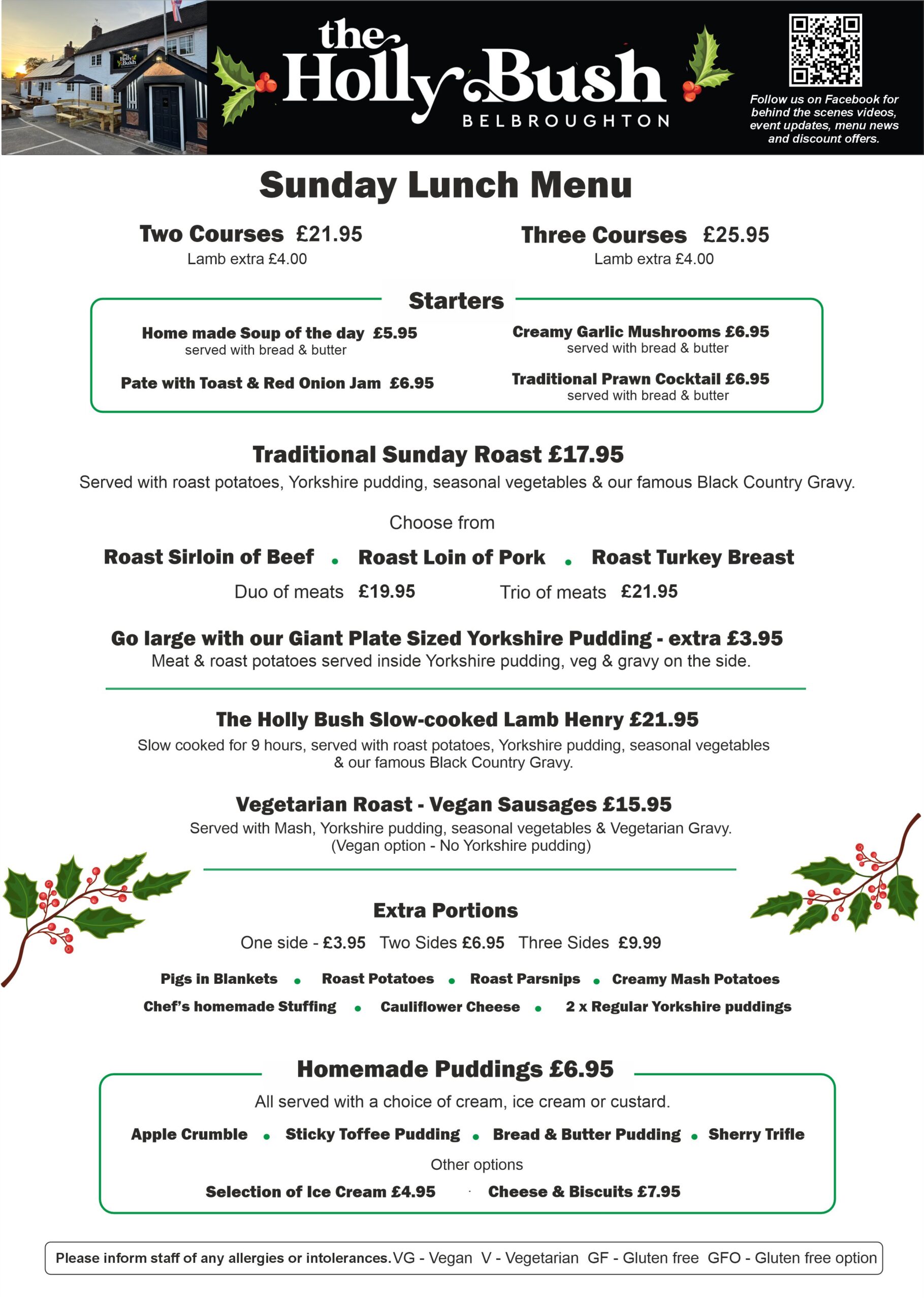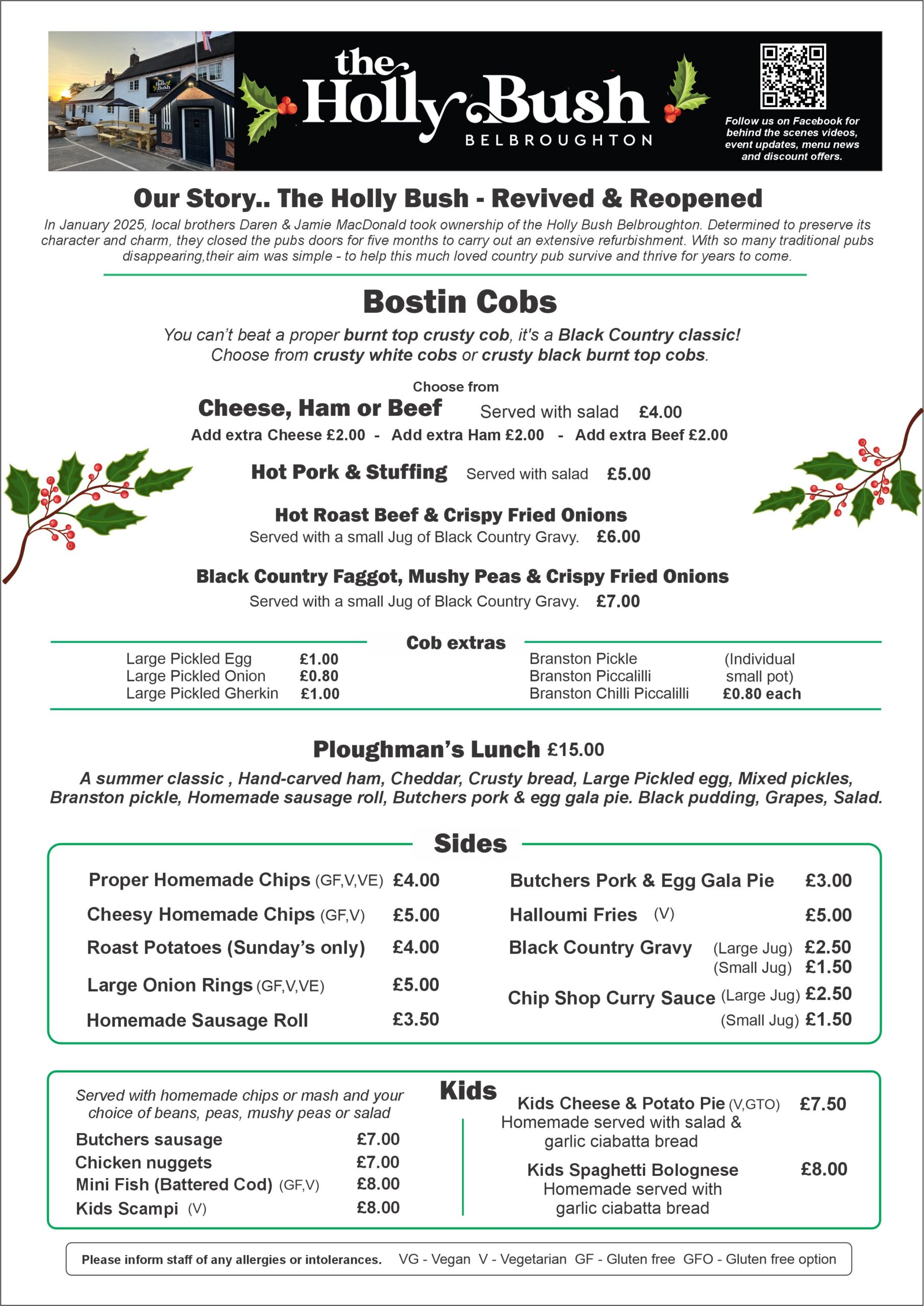 At The Holly Bush, we’re dedicated to serving exceptional dishes crafted from the freshest, highest-quality ingredients, with a commitment to sourcing from local suppliers whenever possible.